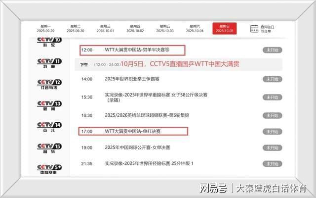 CCTV5更新:WTT中满贯收官日 王楚钦肩负最大悬念 孙颖莎vs王曼昱