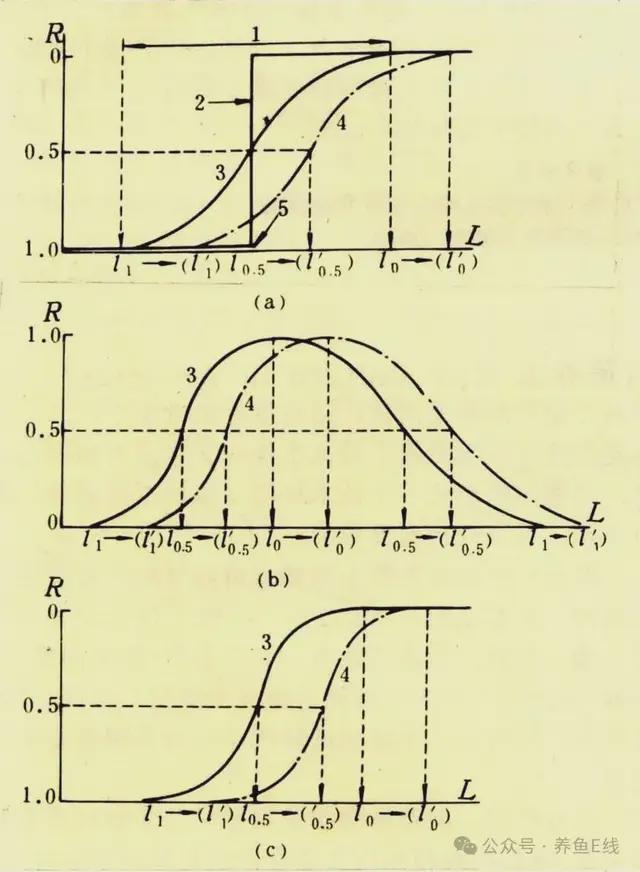 表示选择曲线%选择率时的鱼体长度,或者84.13%选择率时的鱼体长度与选择指数之差值。差值越小,选择性越尖锐。一般把选择尖锐度为零时的选择体长称为绝对选择。实际上不存在绝对选择,在分析时常用l0.5当作绝对选择。