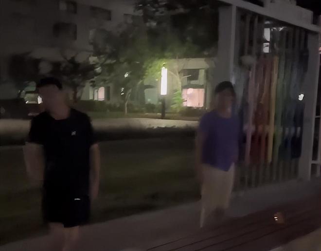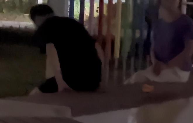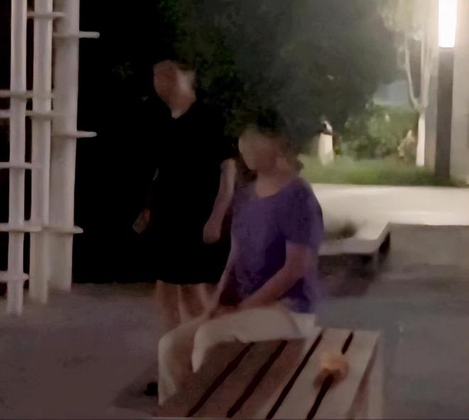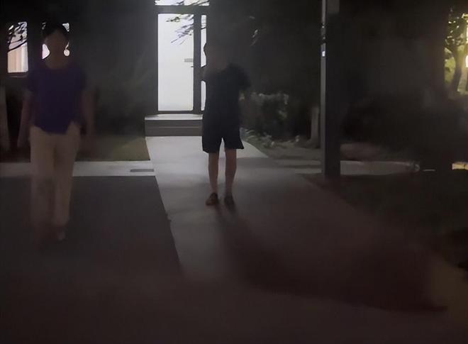 随后画面又一转,父母已经来到了小区凉亭中坐着,而女孩自始至终都和她们保持着距离站在不远处。