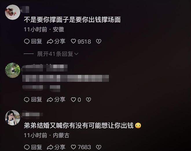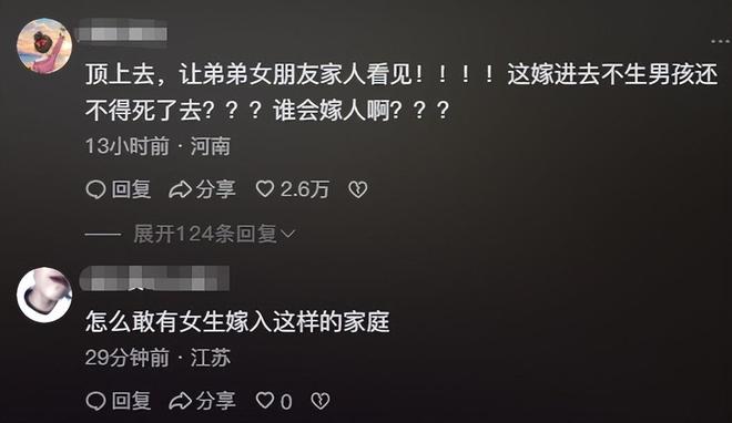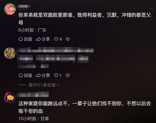 甚至还有网友说:“你弟弟的女朋友嫁到你家可真倒霉,偏心的父母和没能力只会挑事的丈夫。”