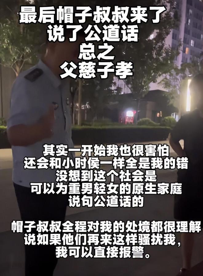 民警叔叔十分尽责说“父慈子孝”,民警叔叔十分严肃且公正的劝告两人不要在影响女孩的生活。