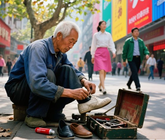 每天,我就像一棵被人遗忘的树,蹲在那个小小的角落里,看着眼前那些光鲜亮丽的男男女女,和他们脚下那些我一辈子都买不起的、锃亮的皮鞋,从我面前,来了又去,去了又来。